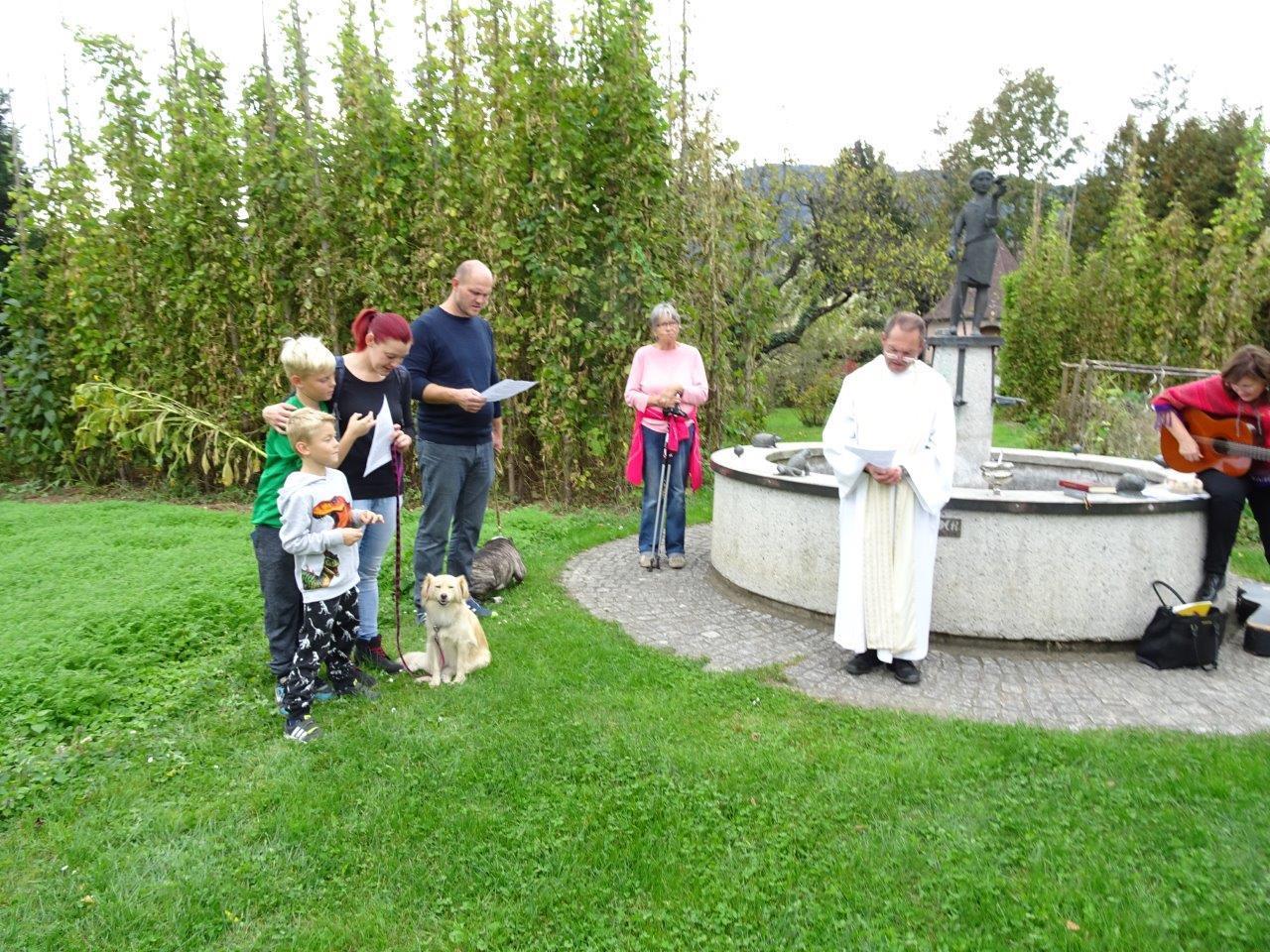Tiersegnung beim Franziskusbrunnen am 8. Oktober 2018